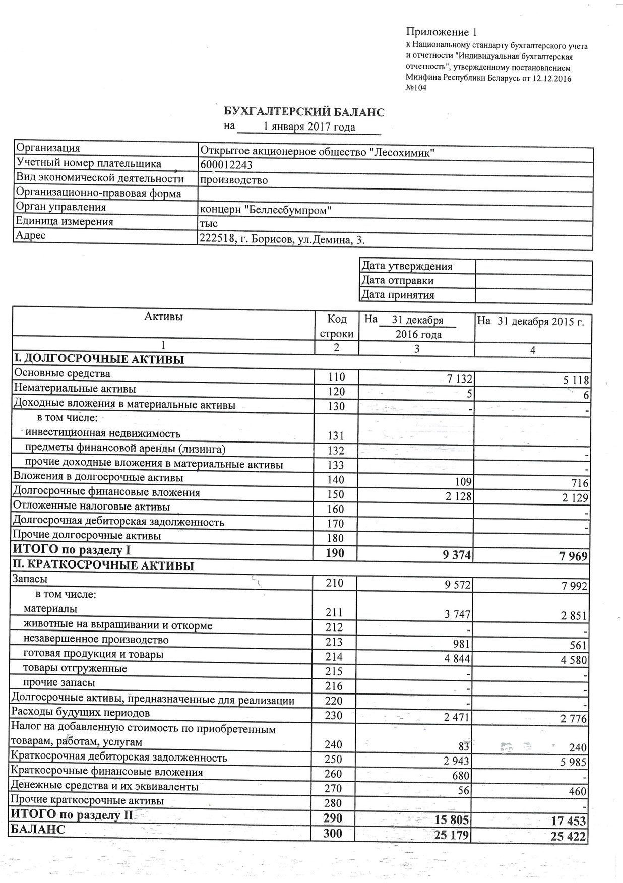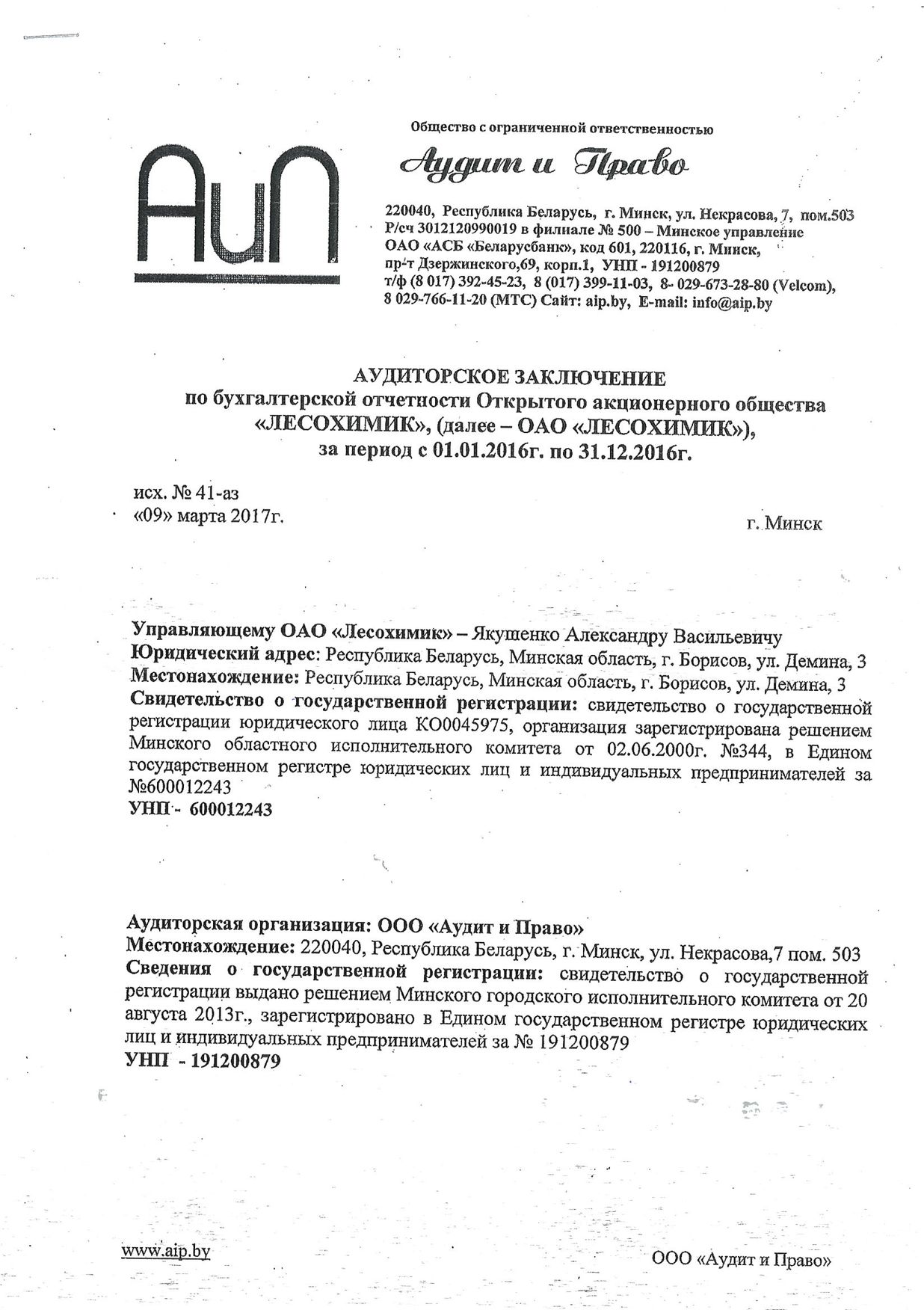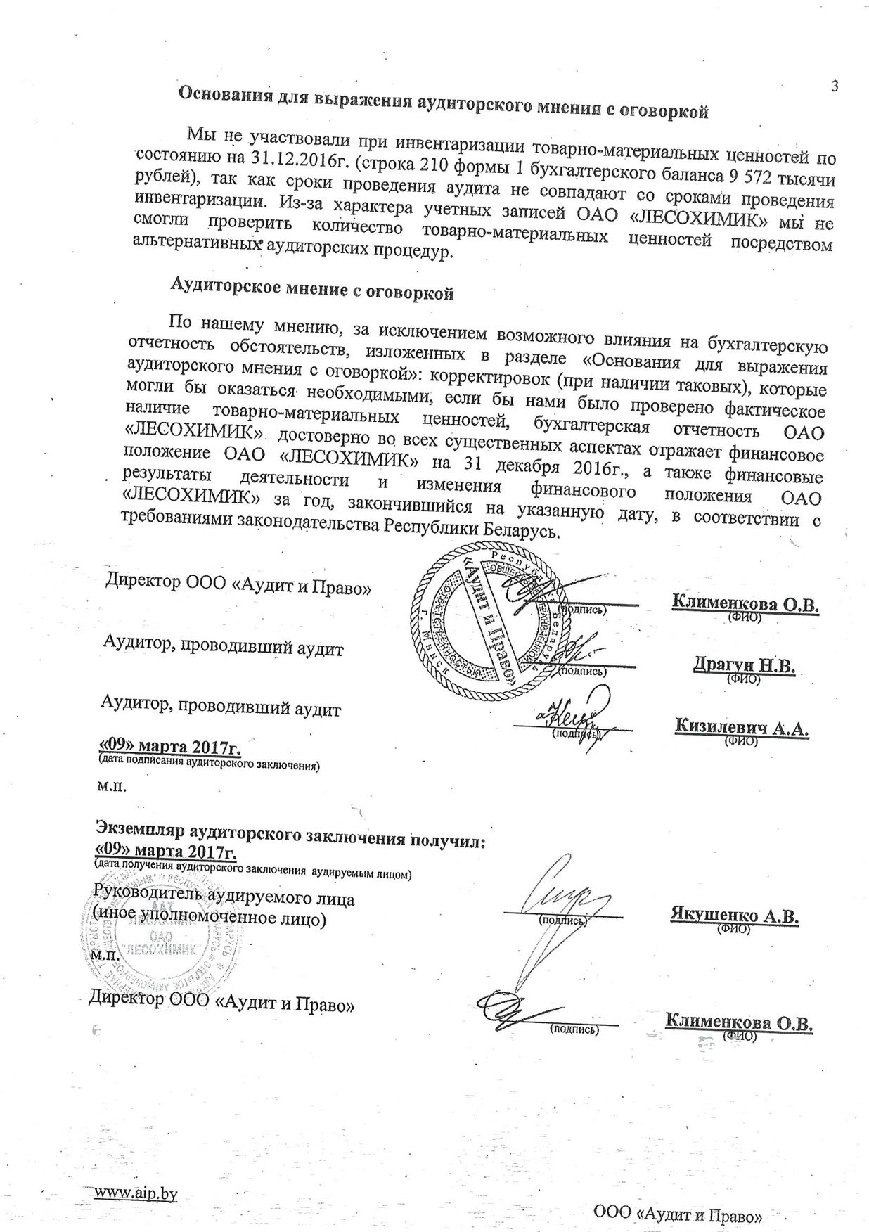 проводит очередное общее собрание акционеров ОАО «Лесохимик» в очной форме 30 марта 2017 г. в 15час. 00 мин. Место проведения собрания: ОАО «Лесохимик», Минская обл., г. Борисов, ул. Демина, 3.