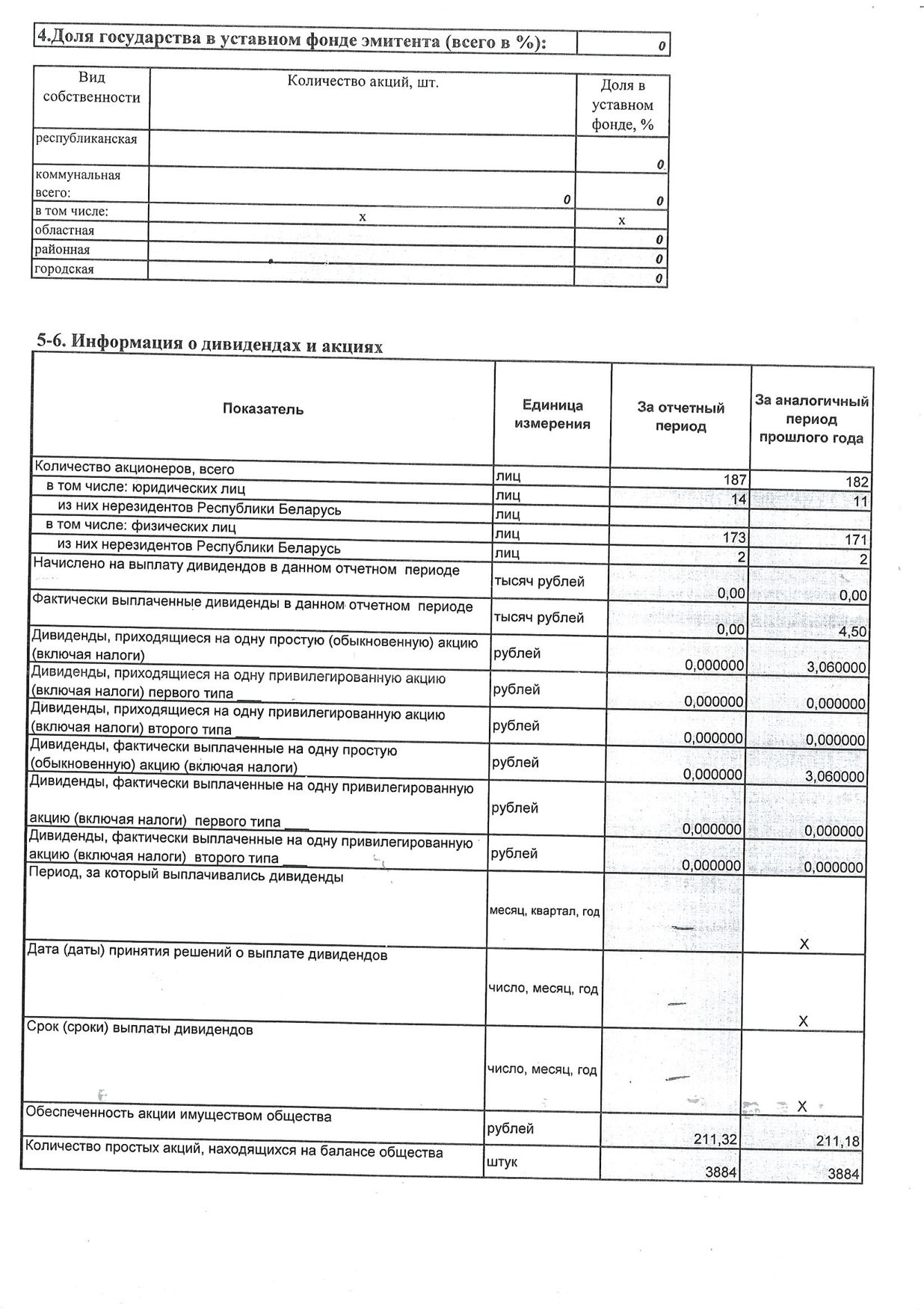 дивиденды, начисленные на одну акцию простую (обыкновенную) акцию (включая налоги) в сумме 35,73 бел. руб.