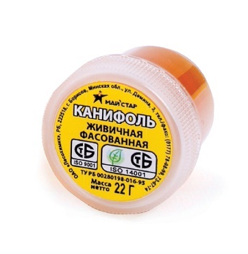 Канифоль живичная фасованная по ТУ РБ 00280198-016-95 предназначена для применения при лужении и пайке металлов, приготовлении сургуча, театрального клея, для уменьшения скольжения стальных деталей и ремней; и получаемая из живицы.