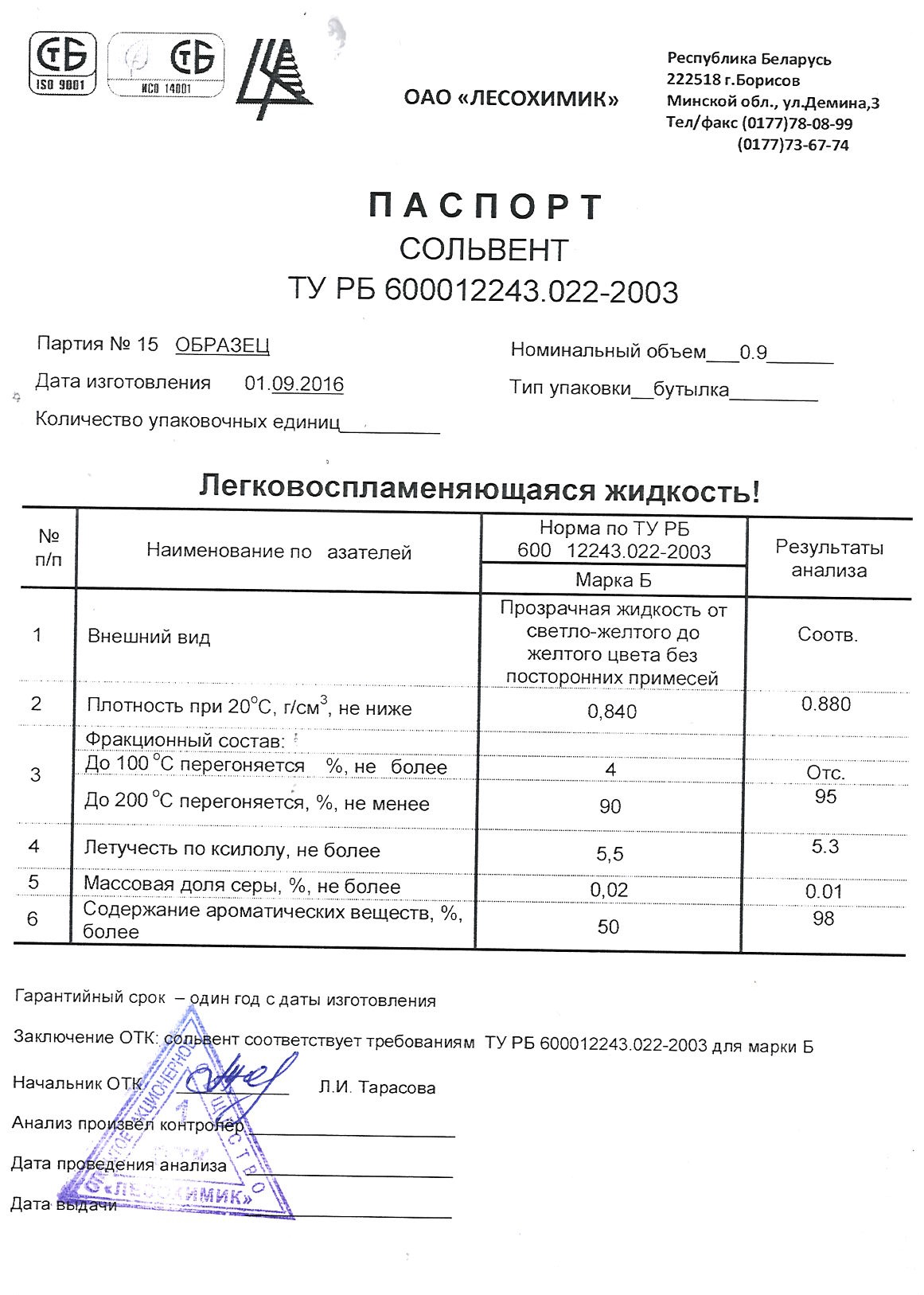 Сольвенты ТУ РБ 600012243.022-2003, предназначены для применения в качестве растворителей лаков (алкидных, масляных, битумных), красок (масляных, пентафталевых, глифталевых), эмалей (пентафталевых, глифталевых).