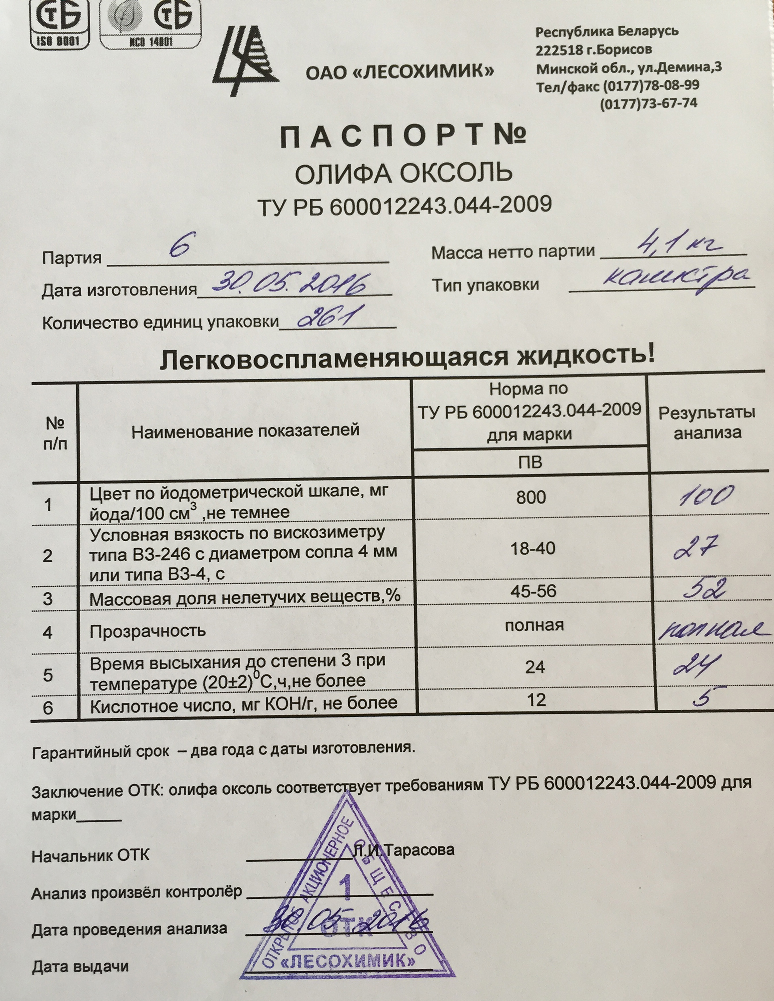 Олифу оксоль предназначена для пропитки различных (деревянных и оштукатуренных) поверхностей перед их окраской, отделки деревянных поверхностей, производства и разведения масляных и алкидных красок.